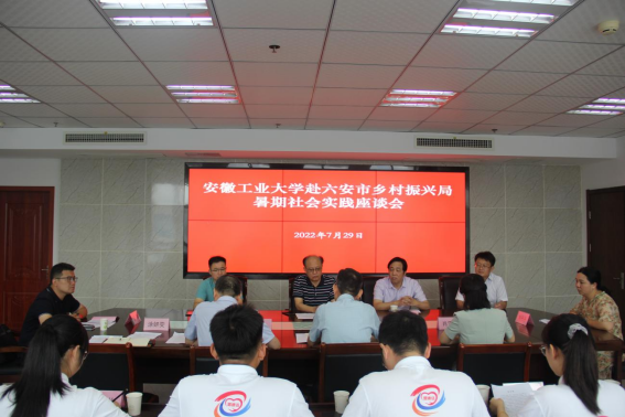 六安市乡村振兴局局长刘正旺热情接待了刘明一行,围绕市情市貌、历史文化、发展历程、脱贫攻坚优异成绩等进行了介绍。实践队的师生代表交流了本次社会实践的收获和感想。
