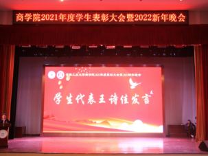 建设和发展也持续发力,同学们努力践行“立学敏行,厚德弘商”的院训精神,涌现出了一大批品学兼优的优秀学生。他强调,当今世界正经历百年未有之大变局,我们国家正处于实现中华民族伟大复兴的关键时期,青年是实现中华民族伟大复兴的先锋力量,希望受到表彰的同学加倍努力,百尺竿头,更进一步;希望广大同学,向受表彰的同学学习,以先进为榜样,见贤思齐,奋起直追,不负青春、不负韶华。他鼓励全体同学要立志做一个明白人,做一个勇于超越的人,做一个严于自律的人,努力创造更加美好的明天。最后,洪功翔向学院师生致以美好的祝愿和新年祝福。