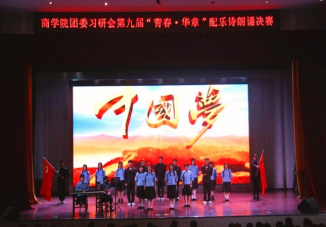 在秀山校区大学生活动中心举办第九届“青春·华章”配乐诗文朗诵大赛。学院2020级辅导员李文娟老师,分团委学生副书记田鹏、学生会主席唐丽吟等团学部门负责人以及往届配乐诗朗诵校赛优秀获奖选手担任评委,2021级各班学生代表到场观看。