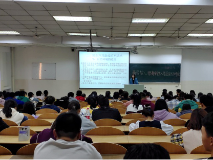 讲座中,苏蔚首先讲述了新生在现阶段面临的三大问题:理想与现实落差造成的失落感;陌生环境造成的不适感;学习模式的变化造成的无所适从感。通过对三大问题的分析和解读后,提出“正确调控自我、合理规划目标、培养自立能力、增强人际关系、采取积极行动”的改进建议。随后,她结合自身心理咨询与干预的真实案例,进一步剖析大学生心理问题表现及成因,从集体关系、特殊异性关系、与父母的关系等多方面讲授了如何正确面对和解决心理问题,强调良好的人际关系对心理健康的重要性。最后,她希望同学们养成良好的生活习惯,认真对待大学课程,以积极向上的心态开启有意义的大学生活,为将来的就业和生活夯实基础。