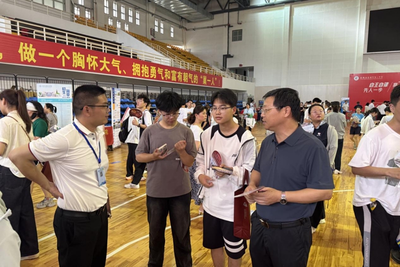 团委副书记张舒、辅导员姜行行、赵婧老师及优秀学子杨欣怡等参与,向考生及家长介绍办学特色、专业优势与招生政策,校党委副书记王俊,院党委书记杜飞,院长章铁生,院党委副书记、纪委书记、副院长蒋磊亲临现场指导。
