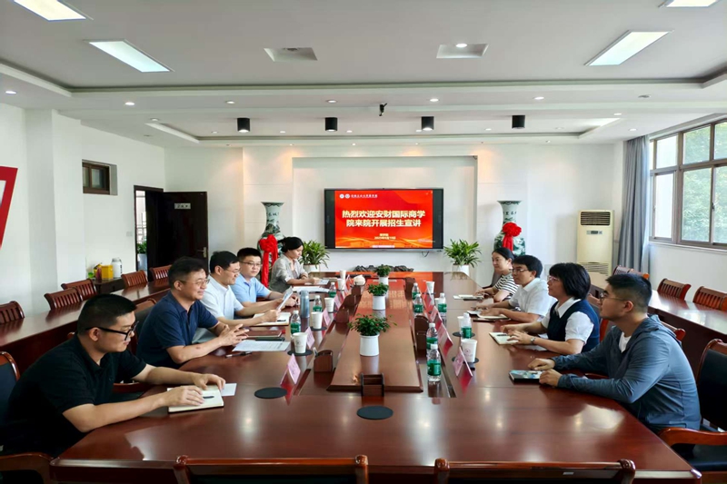 章铁生对吴鑫育一行表示热烈欢迎,并介绍了学院的专业设置、师资力量和学科发展情况,分享了学院在人才招引、科学研究、服务社会等方面的做法和经验,他希望双方要以此次招生宣讲为契机,进一步加强交流合作,共同推动事业发展再上新台阶。吴鑫育对学院的热情接待表示感谢,并简要介绍了安徽财经大学国际麻豆TV
