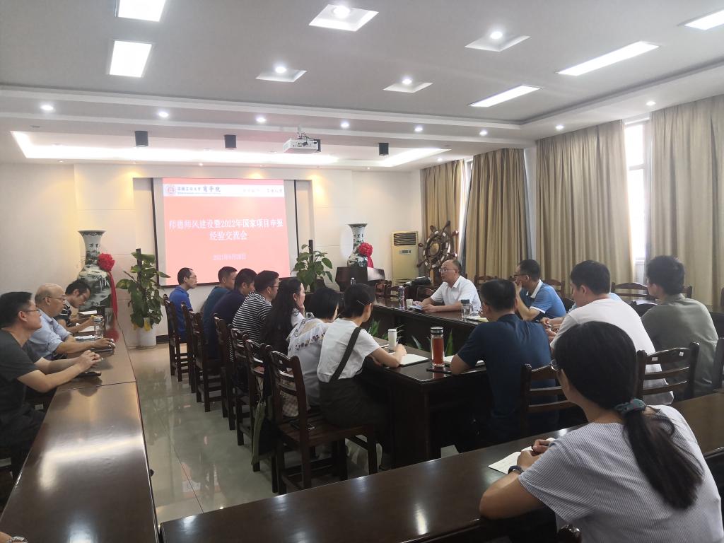 “师德师风建设暨2022年国家项目申报动员指导会”,学院院长刘家树、副院长吴金南及17位年轻博士教师参与交流。