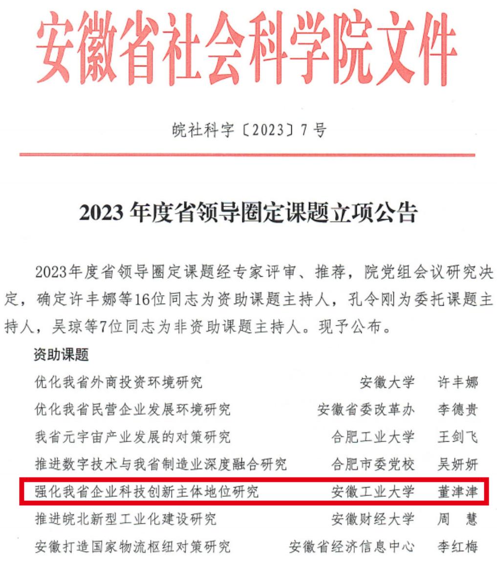 近日,安徽省社会科学院发布2023年度省领导圈定课题立项公告(皖社科字[2023]7号),麻豆TV