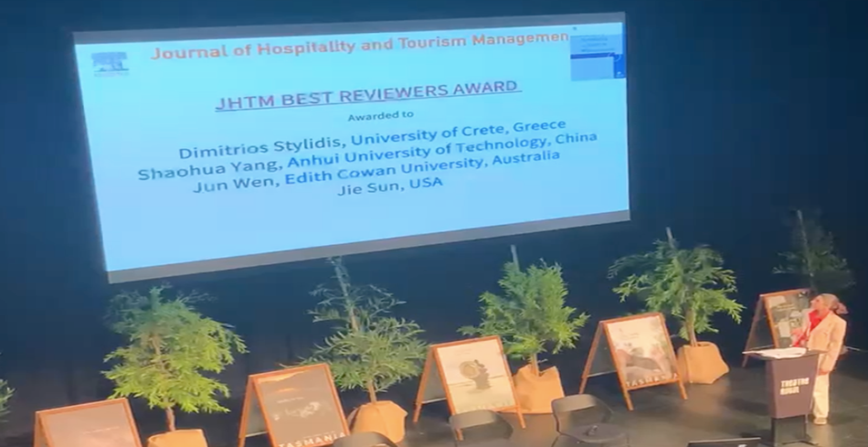 杨少华副教授再次荣获《Journal of Hospitality and Tourism Management》期刊最佳审稿专家荣誉。杨少华博士已经连续两届(2022年、2023年)获得此殊荣,是入选该期刊2023年度最佳审稿专家的全球五位学者之一,也是迄今为止唯一一位以中国大陆大学为署名单位的最佳审稿专家。