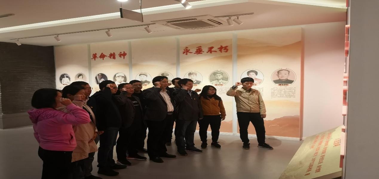 在含山县革命先烈事迹陈列室中,各位党员怀着对革命先烈的崇敬之情,认真聆听工作人员讲解,深切缅怀革命先烈的丰功伟绩。在参观中,珍贵的革命文物、感人的历史图片、震撼人心的革命故事给大家留下了深刻印象,激励大家继续弘扬优良传统、传承红色基因。在陈列室中,面对鲜艳的党旗,全体党员举起右手,重温入党誓词。“我志愿加入中国共产党,拥护党的纲领,遵守党的章程……”,全体党员坚毅的目光、激昂的声音,诠释对党的铮铮誓言,表达对党的忠诚与热爱。