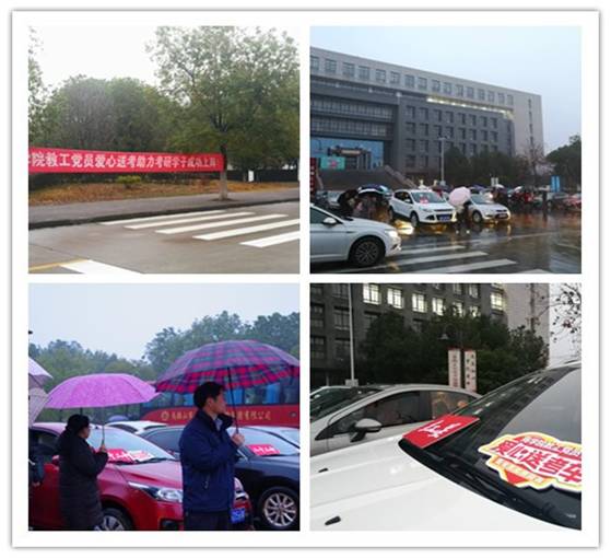 据统计,今年该院考研学生分布在马鞍山市7个考点,考虑到考点分散、路途较远及阴雨天气,为确保学院每位考生能安全、准时到达考点,院党委积极谋划,动员教工党员组建爱心送考车队,志愿送考研学生赴相应各考点。活动得到了广大教师积极响应,共有50余位教工党员主动承担专车送考或随车送考任务,两天里共送考研学生达260余人次,切实为考研学子顺利赴考保驾护航。