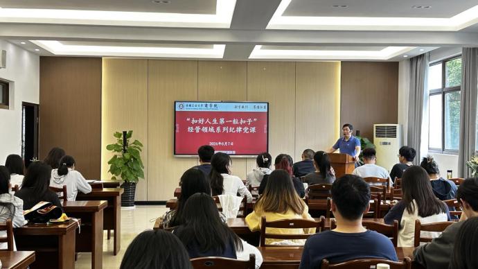 “扣好人生第一粒扣子”经管领域系列纪律党课活动,是学院推进党纪学习教育走深走实,积极探索党纪学习教育新路径的一次有益尝试。学院将以此次活动为契机,持续推动纪律教育与专业教育深度融合,为培养德智体美劳全面发展的社会主义建设者和接班人贡献力量,确保每位走出校门的经管学子都能在社会的大舞台上扣紧人生每一粒扣子,走好每一步路。(撰稿:周毅,李博雅 审核:陈昌龙 李曼 杜飞)