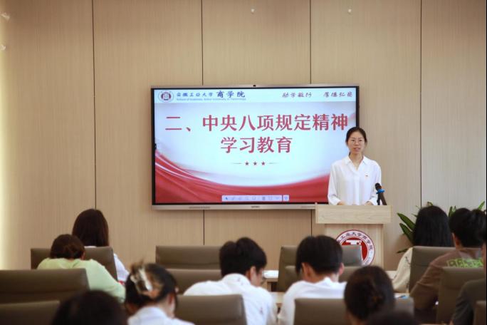 为深入贯彻中央八项规定精神学习教育,加强作风建设,6月13日上午,学院办公室党支部、学生第一、第八、第十、第十一党支部联合举办了“深入贯彻中央八项规定精神学习教育拼贴诗会”主题党日活动,共有来自5个师生支部的党员、积极分子等40余人参加。