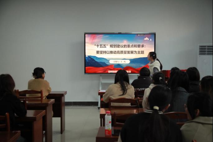 随后,王一凡同志聚焦“十五五”规划建议,深入解读“必须坚持以推动高质量发展为主题”这一根本要求的时代内涵与实践指向。与会同志深刻认识到,高质量发展是全面建设社会主义现代化国家的首要任务,“十五五”时期必须完整、准确、全面贯彻新发展理念,切实推动经济发展实现质的有效提升与量的合理增长。这一主题不仅引领国家经济社会发展,也为每一位青年学子的成长路径与职业规划提供了根本遵循。