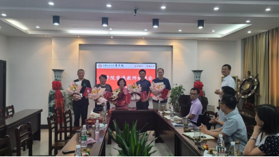 章铁生、顾远代表学院向5位退休教师颁发了退休荣誉证书并敬献鲜花。最后与会的领导、教师代表与荣退教师们进行了合影留念。