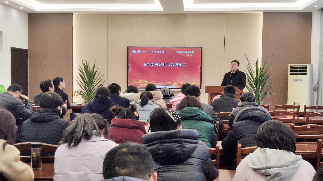 最后院党委书记杜飞总结讲话,指出2023年全院在党建工作、学科建设、人才培养、师资队伍建设等方面取得了优异的成绩。希望全院教职工继续努力,在2024年围绕构建“三三五”党建工作大格局目标,进一步提高工作站位、坚定信心,拉抬标杆、等高对接,踔厉奋发、勇毅前行,促进学校内涵式高质量发展。(撰稿:刘在春、毕春霞;审核:顾远、杜飞)