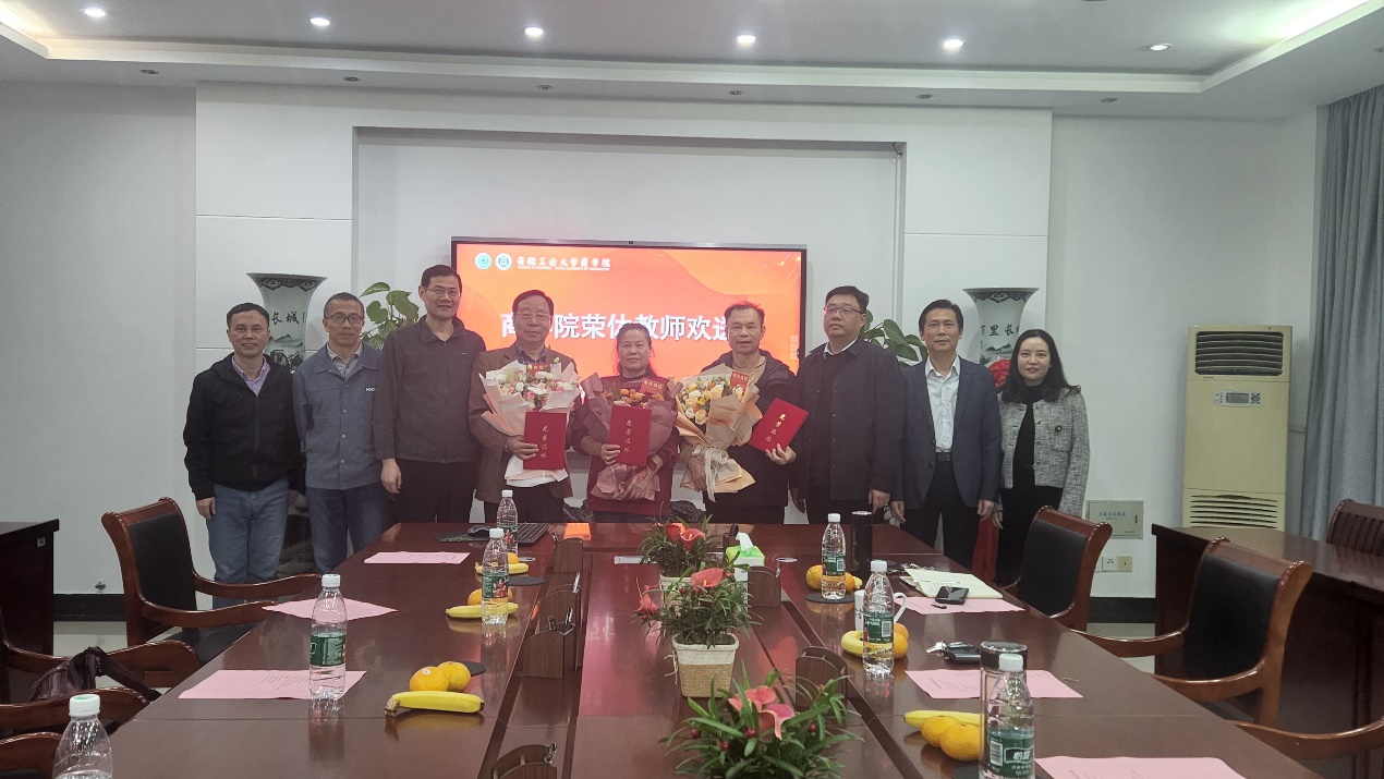 欢送会上杜飞书记、章铁生院长代表学院向三位教师献上鲜花并颁发荣休证书,与会教师合影留念,共同祝福三位老师退休以后身体健康,生活幸福!