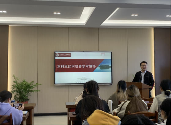 讲座内容围绕三个问题展开:什么是学术情怀?本科生为什么要培养学术情怀?本科生怎样培养学术情怀?吴义东层层递进、深入浅出、风趣幽默地向同学们传道、授业、解惑。