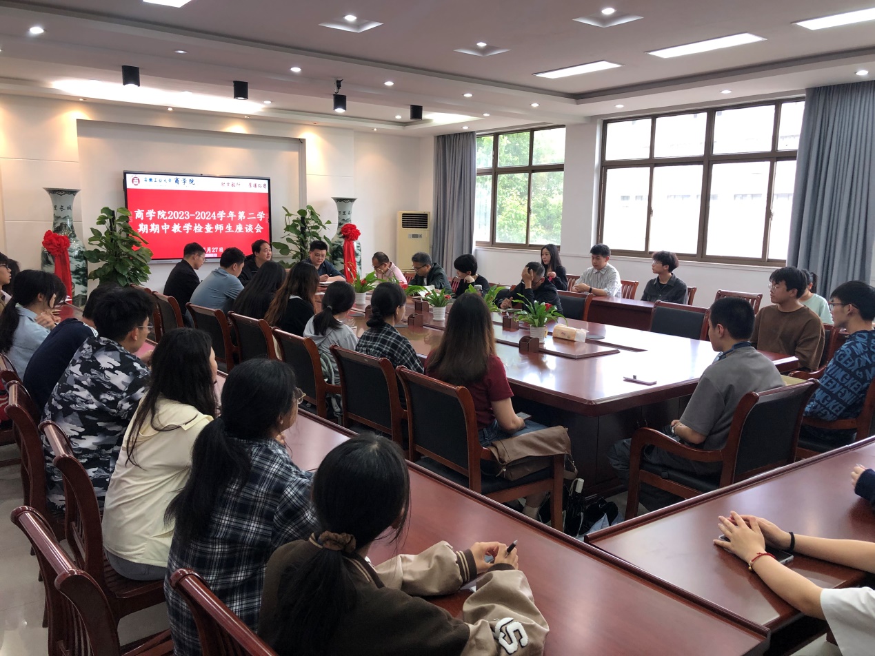 在汇文楼B304会议室召开了2023-2024学年第二学期期中教学检查师生座谈会。院党委副书记、副院长蒋磊、副院长刘艳华以及各系主任、辅导员代表、教学干事和各年级学生代表参加了本次座谈会。座谈会由刘艳华主持。