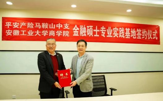 副院长李伟军、MF教育中心主任刘丽萍、金融与统计系副主任梁昌一赴中国平安财产保险股份公司马鞍山中心支公司,与平安产险马鞍山中心支公司总经理曹鹏辰、副总经理张祥宏、副总经理沈陈兵、平安产险安徽分公司人事部主任程泽宇共同出席了金融硕士专业实践基地挂牌及校外行业导师聘任仪式。