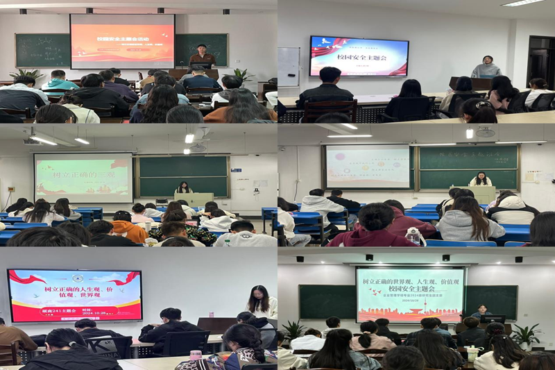 于秀山校区汇文楼组织各班研究生开展校园安全主题班会活动。本次活动由院研会组织部策划,各班团支书主持,全体研究生参加。
