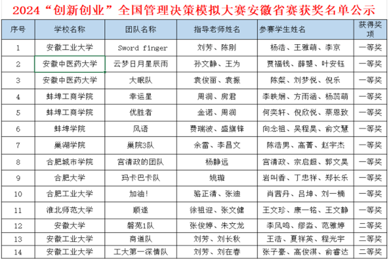 近日,2024年安徽省“创新创业”全国管理决策模拟大赛圆满落幕,麻豆TV