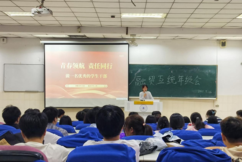 于阶梯教室102室召开“青春扬帆领航路,责任并肩同行途”干部培训会。本次会议由辅导员肖梦雨主持,23级全体班级干部参加会议。