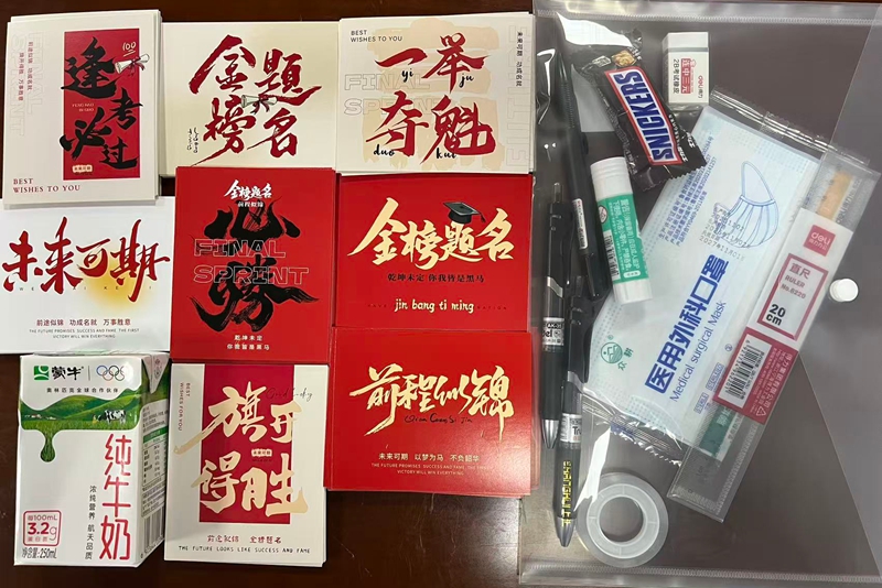 “这份礼物太暖心了!”会计223班陶晶晶同学激动地说,“贺卡代表着学院对我们的祝福,牛奶和小零食给我们补充能量,文具袋更是实用又贴心。”在场同学纷纷表示,学院的关怀让他们倍感温暖,更加坚定了考研的决心和信心。
