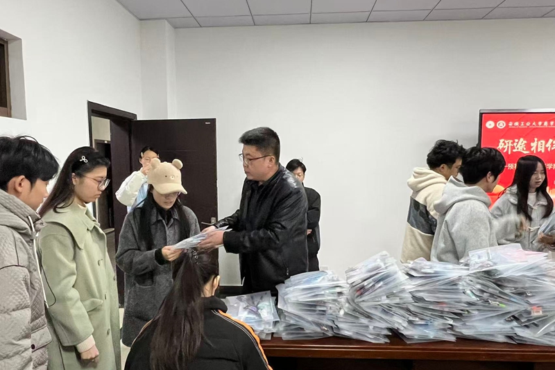 随后,蒋磊和毕业班老师们为学子分发精心筹备的“考研慰问包”,每份慰问包都承载着学院对学生们“金榜题名、旗开得胜”的美好祝愿,让学子深切感受到关怀与温暖。